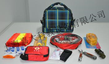 1、34件套药包 2、卡扣式止血带 3、充气补胎液 4、电工胶带 5、电瓶充电线夹