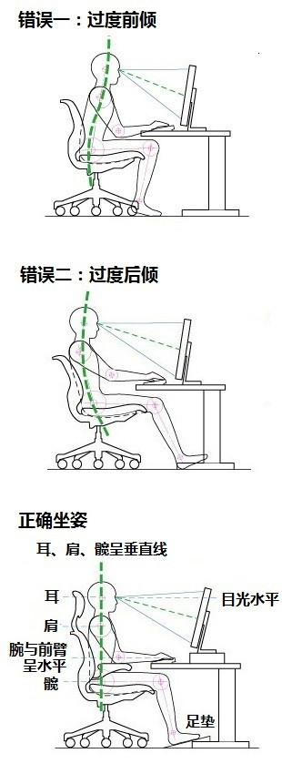 电脑工作人员,注意正确坐姿,与姿势不良相关的脊柱畸形