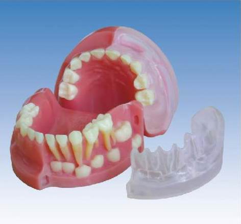 本产品展示了三岁儿童乳司牙交替期,全口乳牙与恒牙在颌骨内的具体位置关系,立体感强;其右半部分可以自由装卸。