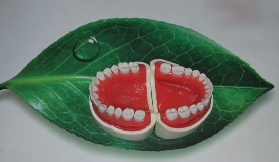 该模型由上颌牙列和下颌牙列两个部件组成,并显示成人上颌牙和下颌牙的形态和构造等结构,共有16个部位指示标志。