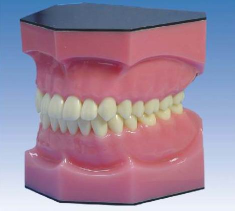 此产品为正常牙齿的两倍大小,显示正常牙的排列。