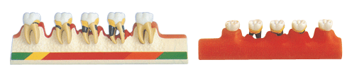 由正常下颌磨牙与牙周病牙等5个部件组成,显示正常下颌磨牙的形态和构造以及牙周病牙病变发展过程等结构,共有15个部位指示标志。