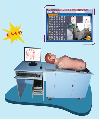 产品简介: 多种穿刺术是执业医师考试实践技能考核的重点项目,网络多媒体多种穿刺模拟教学系统是运用图片、文字、视频、动画等多媒体表现形式,结合计算机网络对医学生的训练进行指导、控制并能通过网络进行统一考试、汇总成绩,系统包括了胸穿、腹穿、腰穿、骨髓穿刺、及心包腔穿刺等综合穿刺术中的重点项目,模拟人材质柔韧,骨性标志明显、髂前上棘、胸锁乳突肌、腹股沟韧带与真正人体解剖位置一致,便于使用者正确找到穿刺点。系统亦可用于在职医务人员培训及基本技能考核,主要包含控制主机、穿刺模拟人及电脑网络三部分。