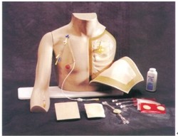 ▲高度模拟的上半身模型,带有可分开的右手手臂,可进行插入、护理和取出,长时间的血管通道等模拟训练。
