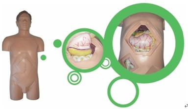 本产品可以重复进行外科手术,从而实现以培养医学生外科手术技能为重要目标的教学模式,为医学生提供一种能进行多种外科手术操作的教学示教及手术实习模型。 在仿真人体模型上设有方便更换的手术局部腹部分层结构模块及仿真人体器官、病变,使医学生如同在真实病人身上“动手术”。可进行切开、止血、剥离、结扎血管、切除、吻合、缝合、换药等,从而培养医学生的外科手术实践技能。可进行阑尾切除术、胆囊切除术、胃大部切除胃空肠吻合术、左腹股沟斜疝修补术及脾切除术等十余种手术示教及技能训练。