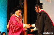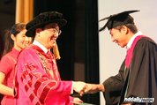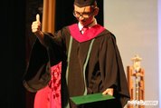 “结了婚的站起来,还有没有谈好了没结婚的?也站起来!”台下黑压压一片站了起来。昨日上午,中山大学中山医学院89名医学生被授予博士学位证书,毕业典礼现场,校长许宁生调侃他们,希望他们的孩子继续读中山大学。据悉,这89名学子是全国首批八年制医学博士。