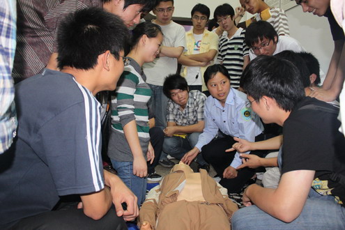 如何正确拨打120报警电话?怎样处理伤口才是最安全的?人工呼吸的正确步骤都有哪些……在市120急救中心里,120医护人员现场演示了常用的急救技术,并指导学生实际动手操作,让学生们受益匪浅。吉林一中高一26班学生徐清华说:“我学习急救知识,主要是在应急情况下,能够为那些重病患者,赢得一点儿宝贵的时间,帮助别人。”
