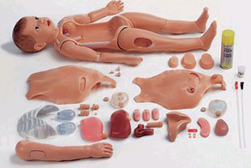 根据三岁儿童的解剖特征设计,专业从事儿童护理训练,产品采用进口材料,皮肤柔软有弹性,不易变形,造型逼真,外观可爱,内部解剖结构清楚,是儿科护理教