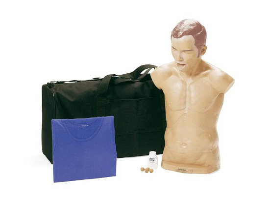 该模型为半身男性模型,具有解剖学特征,主要模拟异物气道梗塞,训练腹部按压手法,通常称为Heimlich手法。
