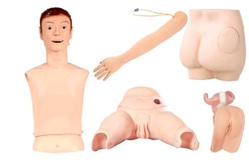 该模型是由男性上半身基础护理的主要功能组成,通过鼻腔和口腔进行病人呼吸气道管理与胃部的各项护理训练技术。