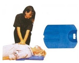 按压板由高密度聚乙烯塑料制成,表面坚固,一端压低成杯状恰好能保持病人的头部后仰。版面上的织纹能防止病人在心肺复苏过程中滑动,正面描有等高线更容易抬起病人