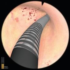 宫腔镜手术模拟器用来模拟临床宫腔镜手术,培训医师宫腔镜手术标准操作。系统可模拟宫腔镜在子宫内的进出、液体流量的控制、镜头的调节、镜头的旋转、器械的旋转、环形电极的使用等等。系统可模拟正常组织、病理组织、软组织损伤等。操作不当可引起出血、液体压力过高等并发症。操作时有力反馈手术手感,可对操作过程评估、打分。