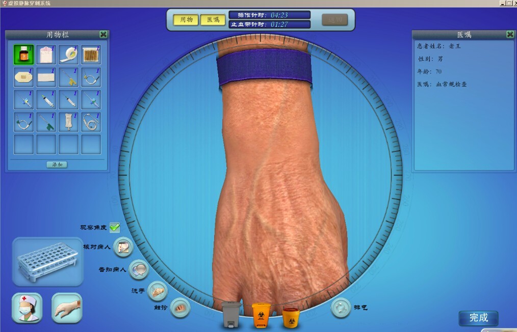 本产品适用于高等医学院校、职业技术学院、卫生学校、医院等单位。本产品用于练习静脉穿刺,反复练习可提高学生的护理操作技能。本产品不仅可以反复用于穿刺练习,还可以通过考核系统设置的一系列测验,来考核学生所达到的知识水平和操作水平。该模型解剖位置十分精确,是一款值得您选择和信赖的产品。