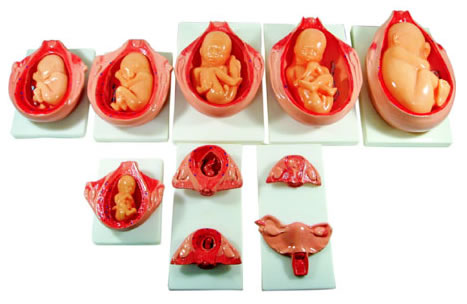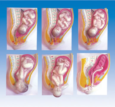 本模型10件为一套,示胎儿十月妊娠发育过程与子宫的关系。