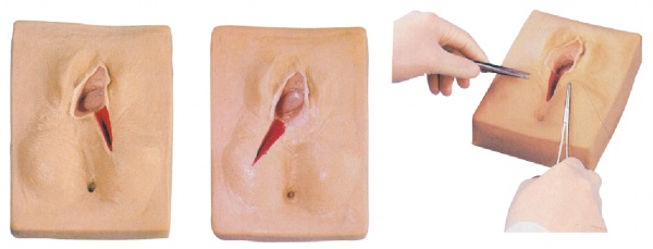 该模型可展示外阴切开切口、正中切口、左侧切口、右侧切口。