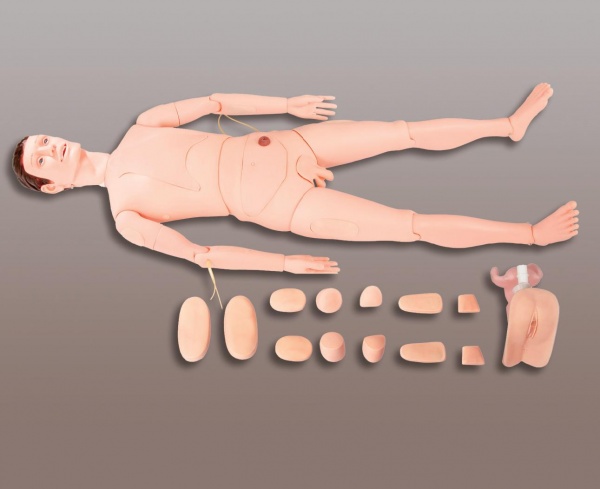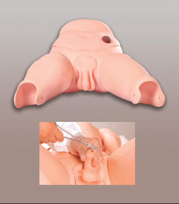* 导尿通过粘膜皱壁、尿道球部及尿道内括约肌时,学生将会体验到如同真人般的狭窄感,可以通过改变体位和阴茎的位置,使导管顺利插入 ,