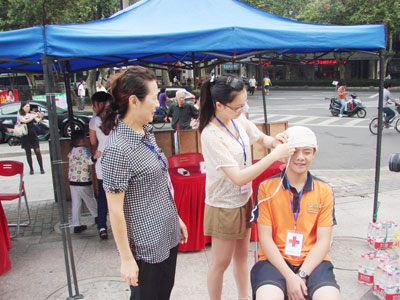 9月8日,江苏省南京市鼓楼区红十字会举行了纪念第13个“世界急救日”主题大型宣传活动。活动现场,6名救护培训师通过现场演示心肺复苏、止血、包扎、固定等救护技术,让更多人了解了应急救护知识,掌握了应急救护技能。活动现场,还为500余人提供了咨询,发放宣传资料1000多份,展出展板20余块,拉横幅4条。鼓红/文、摄
