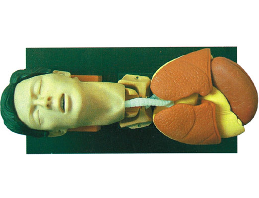 逼真的口腔(牙齿、舌、悬雍垂),逼真的气道(会厌、声门、喉、杓状软骨、声带、气管)和食道,逼真的左右肺和胃。