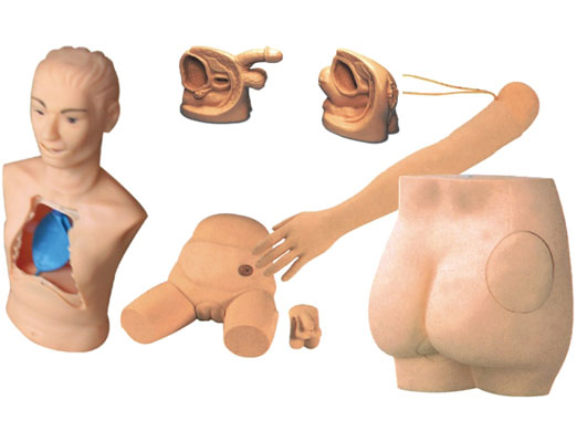 该模型共分七个部件组成,级按操作规则进行22项基础护理操作,方便局部护理的教学操作