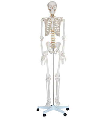这款经济型的、真人大小的、关节相连的塑料模型是基础解剖教学的理想模型,物美价廉。手臂和腿部可拆下供研究。显示神经分支、脊椎动脉和腰椎间盘等。头颅含可活动的下巴、可移动的头颅盖、骨缝线和三颗可取下的下牙。用PVC制成,可水洗,不破碎。尺寸:170CM