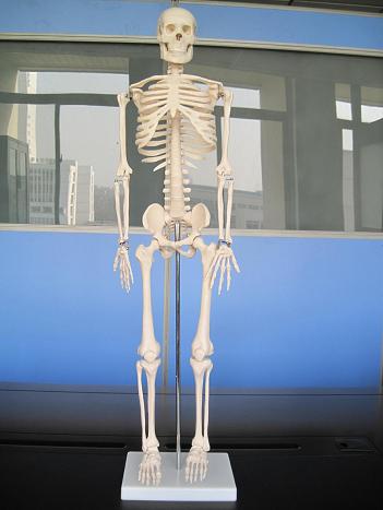 产品说明:这款经济型的、85CM、关节相连的塑料模型是基础解剖教学的理想模型,物美价廉。手臂和腿部可拆下供研究。显示神经分支、脊椎动脉和腰椎间盘等。头颅含可活动的下巴、可移动的头颅盖、骨缝线和三颗可取下的下牙。安放在牢固的16英寸金属架上。模型依据人体骨骼标本复制而成,适用于各大中专院校在讲解人体全身骨骼时,使学生了解骨性支架,和形体关系,了解各种不同类型骨的形状与骨面特征及构成骨关节的相互关系。