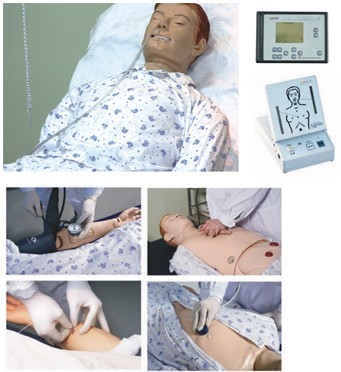 高级心肺复苏、AED除颤及创伤模拟人(计算机控制、三合一组合):本产品提供基本生命体征的多媒体课件教学,适用于紧急救护中心、医院、医学院、卫校进行训练和考核。产品由基础急救培训应用软件、全身人体模型、模拟AED组成,可模拟瞳孔变化、颈动脉搏动、心肺复苏训练、AED除颤、病历编辑、多媒体课件教学等急救训练。
