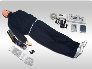 本模型可以对仿真人进行瞳孔观察、模拟颈动脉搏动、气道开放、CPR急救、胸前捶击、气管插管、血压测量、建立静脉通道等急救方面的全方位练习,同时还可以使用真实除颤仪进行除颤操作,及外接心电监护同步输出6导联心电图。