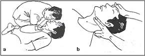 6、压额抬颚法,保持呼吸道畅通,防止舌头因重力下垂阻塞气道。