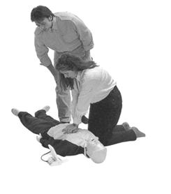 按压30次,在有效吹气2次,五个循环周期CPR | ||