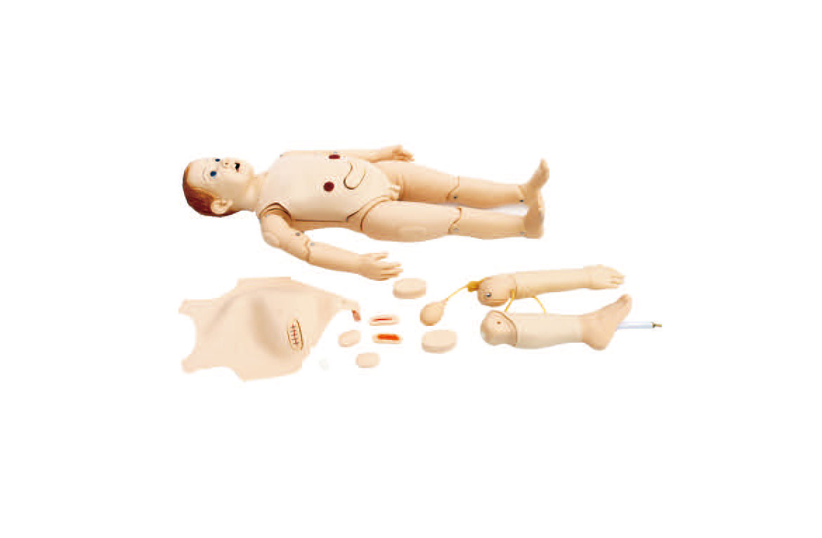 根据三岁儿童的解剖特征设计,专业从事儿童护理训练,产品采用进口材料,皮肤柔软有弹性,不易变形,造型逼真,外观可爱,内部解剖结构清楚,是儿科护理教学和训练的好帮手。