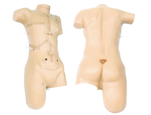 功能特点:提供14个标准手术切口,可以用于练习和提高各种伤口的护理、清洗、换药、包扎等基本技术。