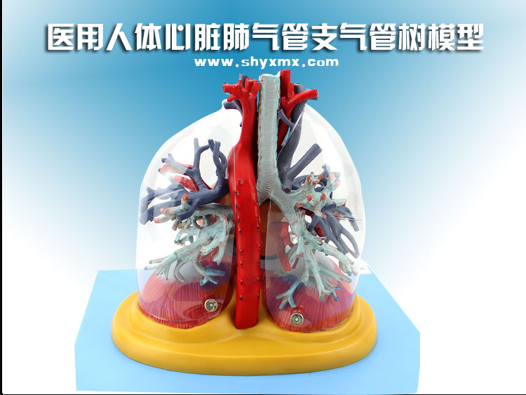 该模型由心脏、大血管(主动脉、上腔静脉)、气管支气管树和膈等4个部件组成,并显示心脏和大血管、透明肺、气管、支气管树以及肺段支气管等结构,共有57个部位指示标志。
