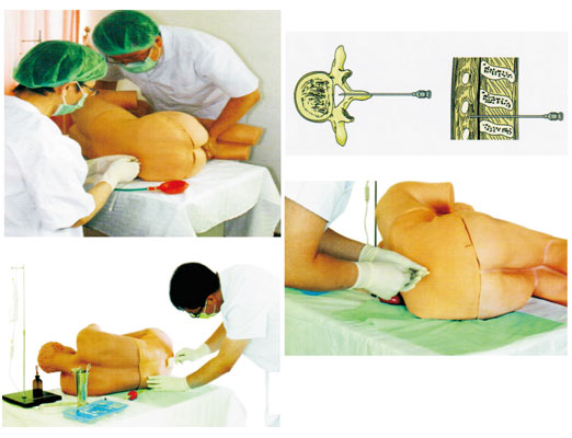 可行以下各种操作:腰麻、腰椎穿刺、硬膜外阻滞、尾神经阻滞、骶骨神经阻滞、腰交感神经阻滞。