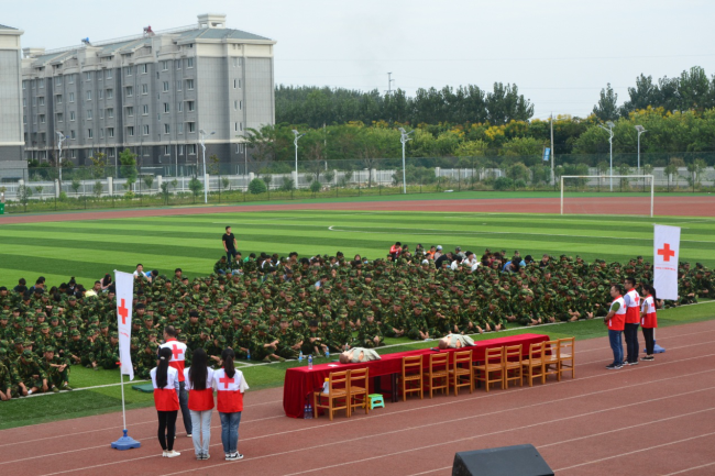 学急救走进军训新生群(1200余名师生参加了此次培训活动)
